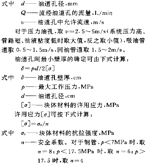 块体内油道孔径的确定可按下式计算: