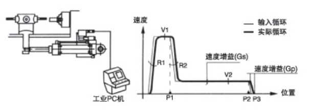 需设定的参数:位置P1、P2、P3,闭环增益Gp、Gs,快慢速度V1、V2,加速斜坡R1、R2,还乐意选择第三速度V3(更慢)以达到最大精度(行程的0.1%)。