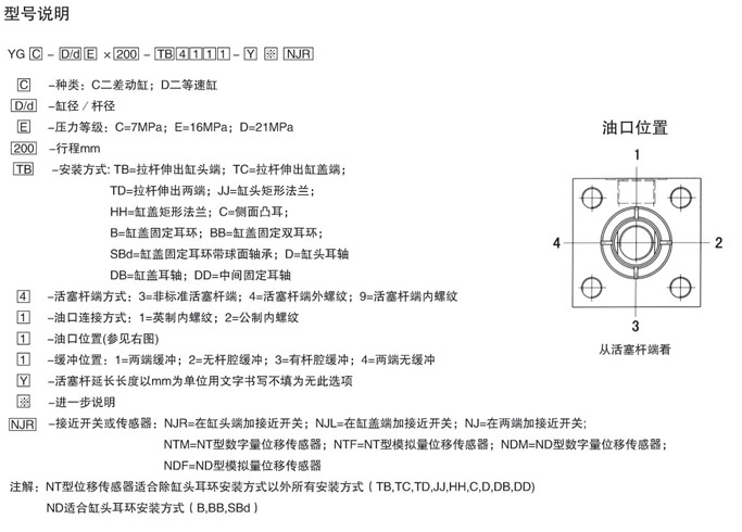 1.带接近开关的液压缸:即在标准YGC/YGD系列液压缸前后盖内安装上电感式接近开关能在液压缸完全外伸或内缩时提供指示,该装置工作温度-35~+80℃,使用压力密封,作用在传感面上的动态压力可达30MPa,通过把接近开关装进缸头或缸盖,可消除与外部行程开关连带密封于缸体内,所以不容易损坏。我公司提供的电感式接近开关全部有德国工厂制造,通过UL及CE认证工作,并设计成能在强磁场(例:焊接设备和大电流电动机附近)及强振动(高达30g、200Hz的振动)环境下安全工作,因而被汽车工业及重载工业广泛采用。另外,接近开关还可以与编程控制器直接兼容。