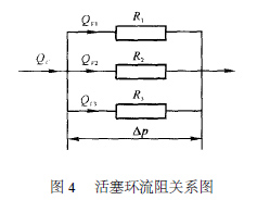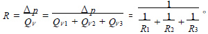 回路流量与各个泄漏流量的关系为QV =QV1 + QV2 + QV3 ,总的流阻与各泄漏回路支路流阻之间的关系为